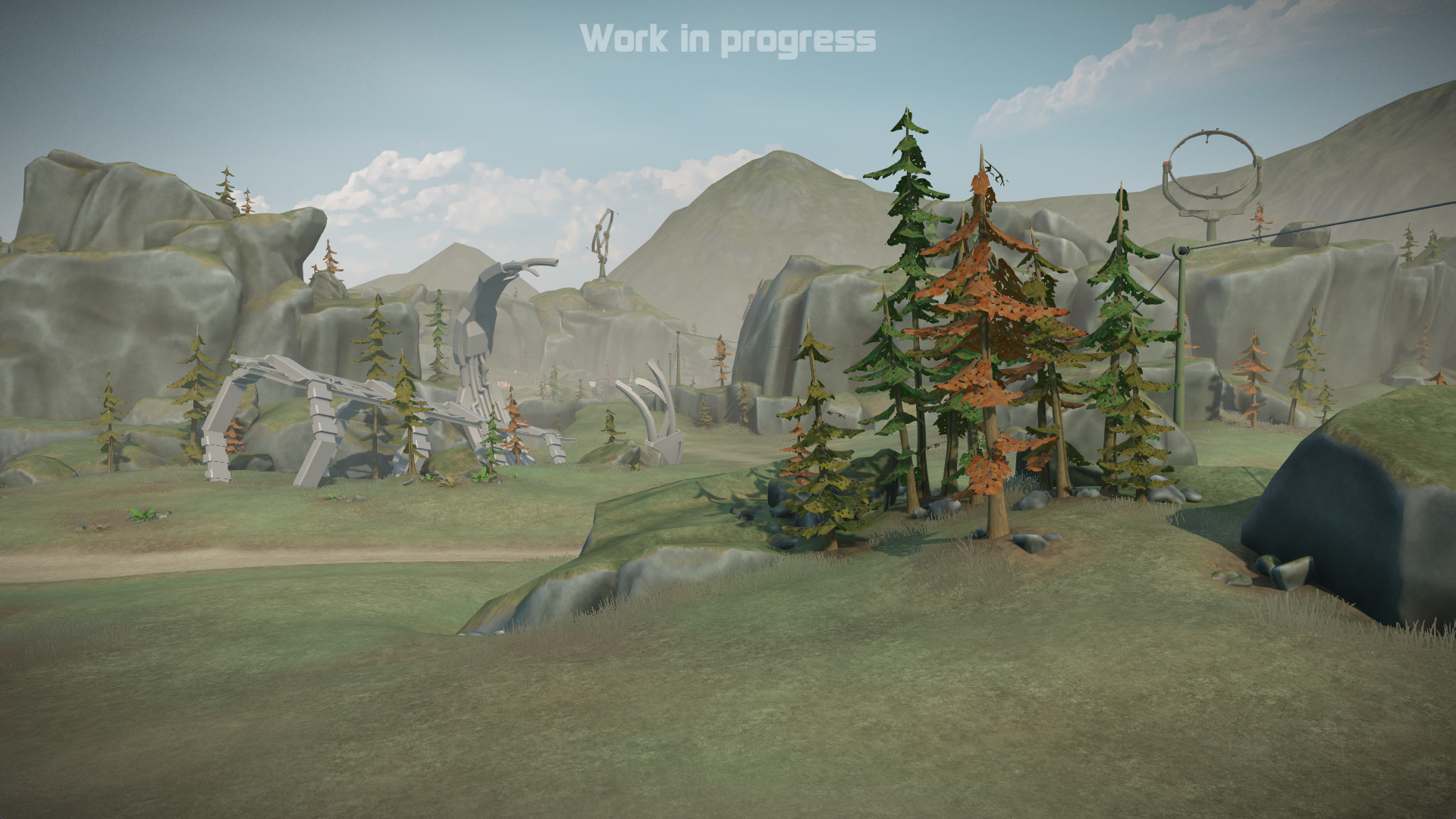 As usual, click the image for a larger version. The image shows the plains near the linear transport station. The gray ark ship debris is still lacking a proper material and textures, but otherwise the devshot is approaching the look I am aiming for. Quite a few new features have been added since the previous DevShot. We have indirect lighting in the form of lightmaps (for larger objects) and light probes (for smaller/dynamic ones), there is support for rendering really far-away objects such as the clouds, we finally have grass and foliage in the scene etc.